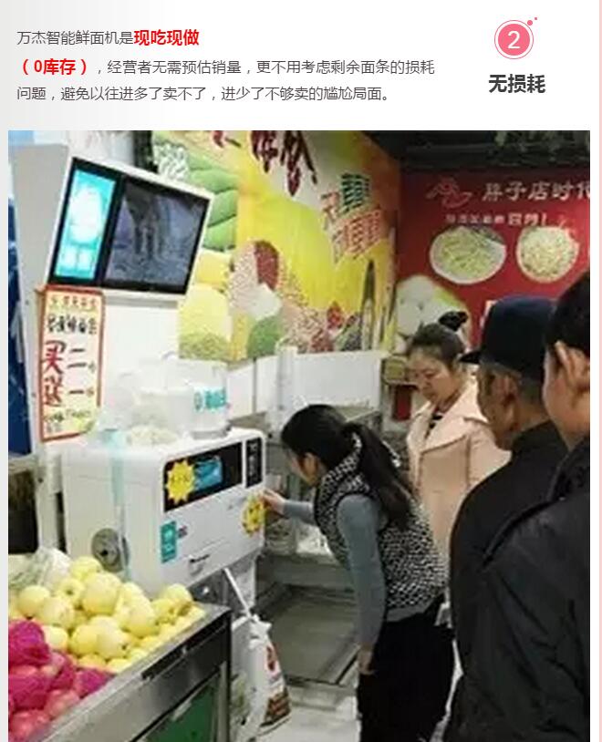 萬(wàn)杰智能鮮面機(jī),一鍵啟動(dòng),8秒出面,因?yàn)楝F(xiàn)吃現(xiàn)做,所以無(wú)需運(yùn)輸,無(wú)需儲(chǔ)存,制作全程0添加。消費(fèi)者放心買(mǎi),銷(xiāo)售者放心賣(mài)。 如今,萬(wàn)杰智能鮮面機(jī)已成為超市的熱點(diǎn)項(xiàng)目,尤其對(duì)于社區(qū)超市,萬(wàn)杰智能鮮面機(jī)有著巨大優(yōu)勢(shì): 目前,智能鮮面機(jī)已經(jīng)在北京、河北、河南面世, 全國(guó)10萬(wàn)臺(tái)鋪設(shè)活動(dòng)正在進(jìn)行! 引爆呼市正在啟動(dòng),快快聯(lián)系我們吧! 歡迎撥打商務(wù)合作熱線(xiàn):18686038613 萬(wàn)杰智能鮮面機(jī)受到農(nóng)業(yè)部、央視等行業(yè)權(quán)威機(jī)構(gòu)、媒體的廣泛關(guān)注 |